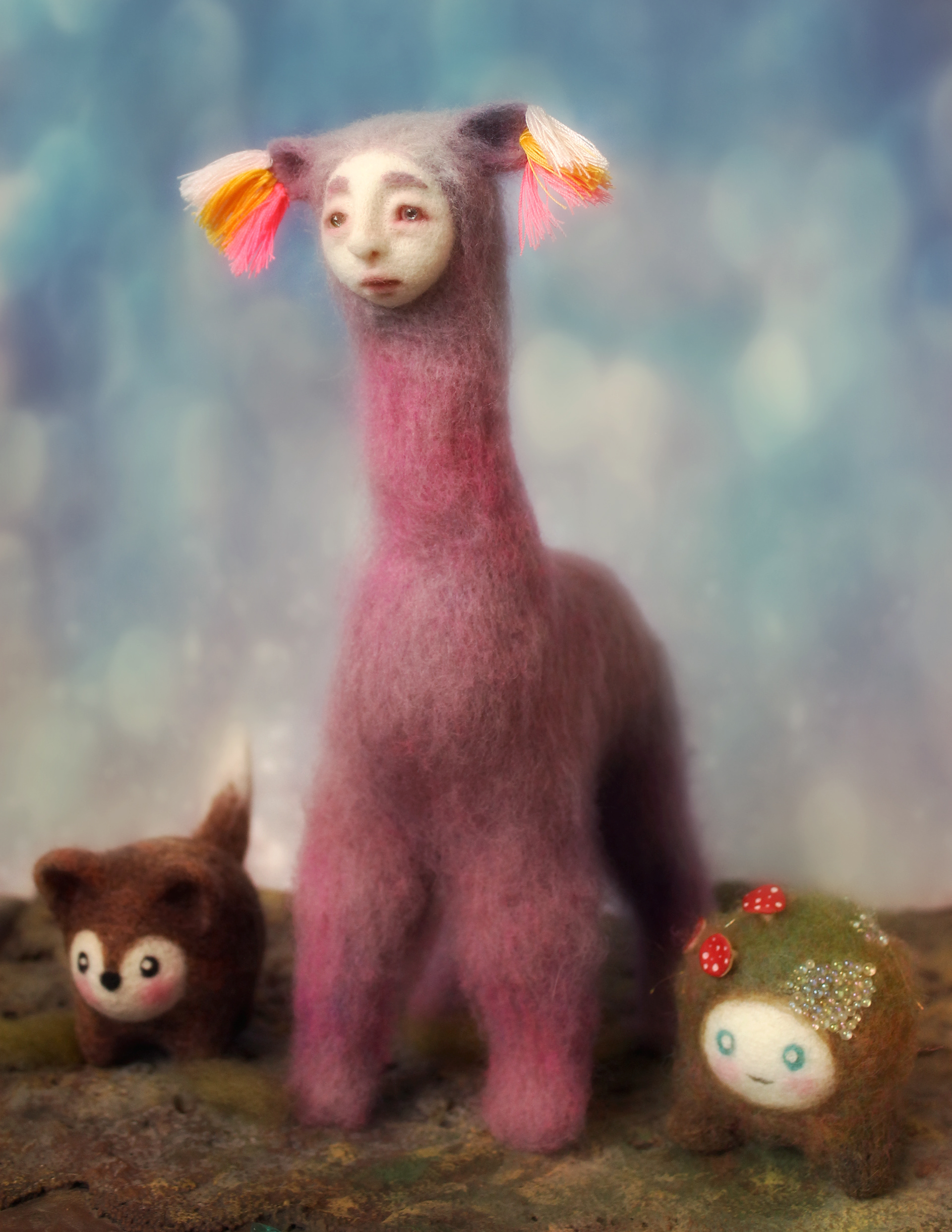 Añañuca (Rhodophiala rhodolirion) Needle felted Artdoll