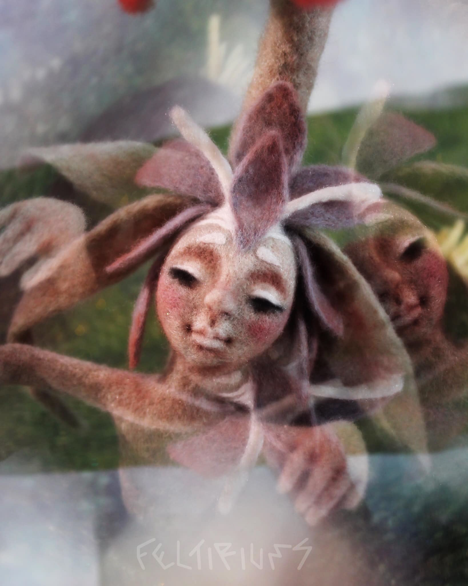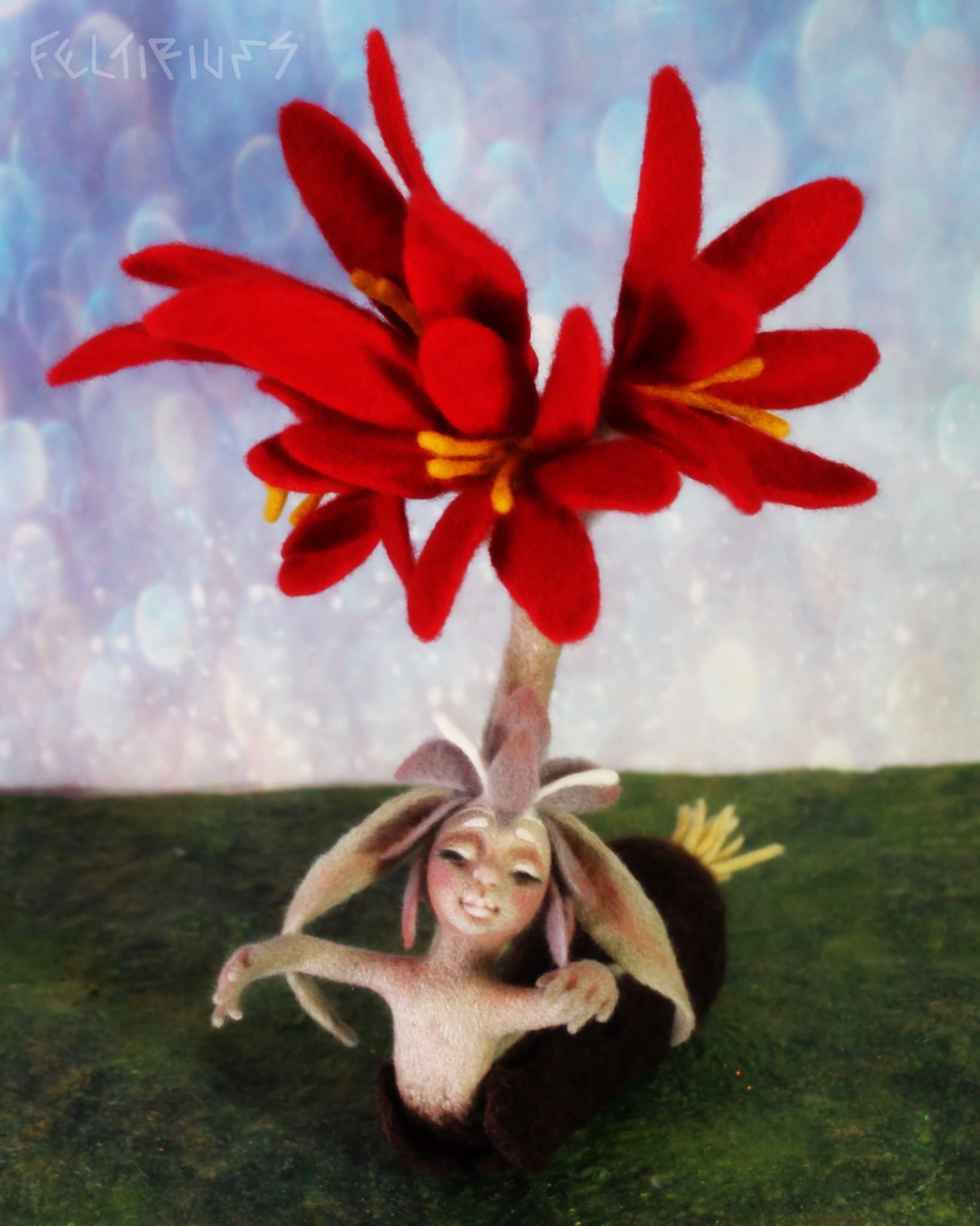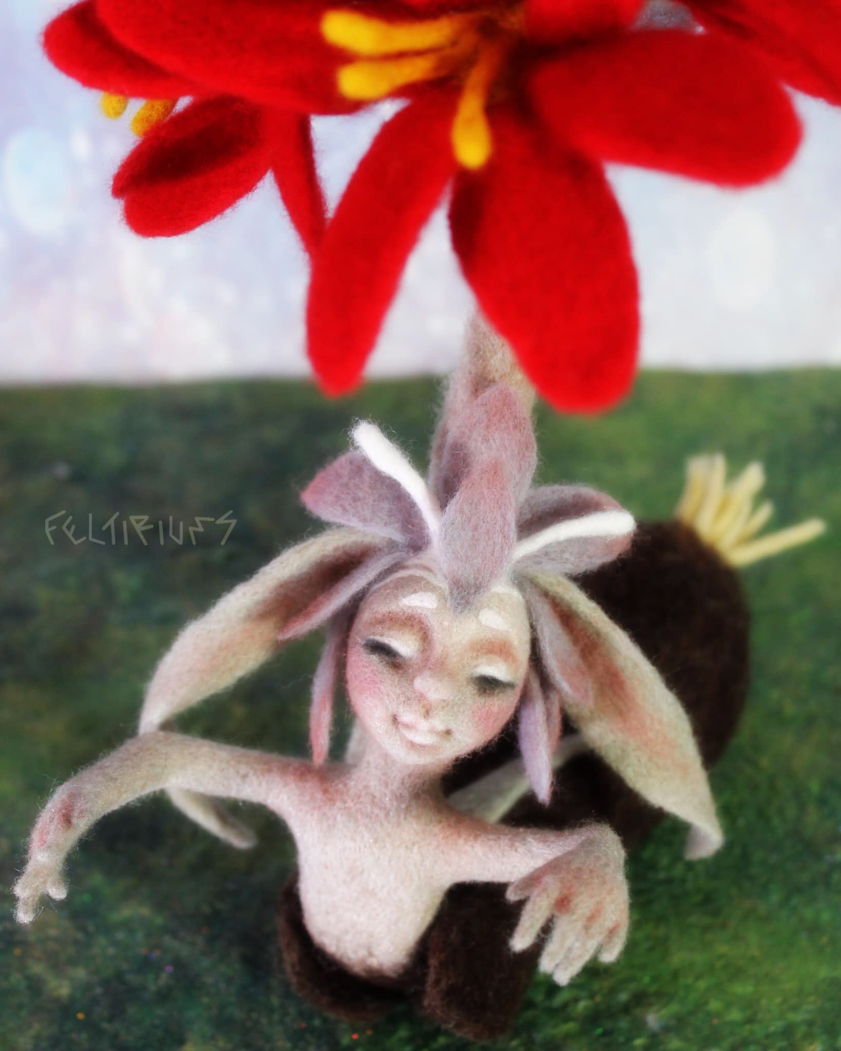 Añañuca (Rhodophiala rhodolirion) Needle felted Artdoll