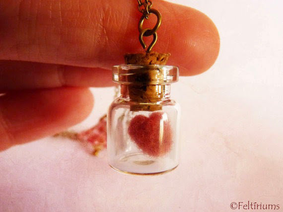 La pequeña botella contiene un mini corazón de fieltro