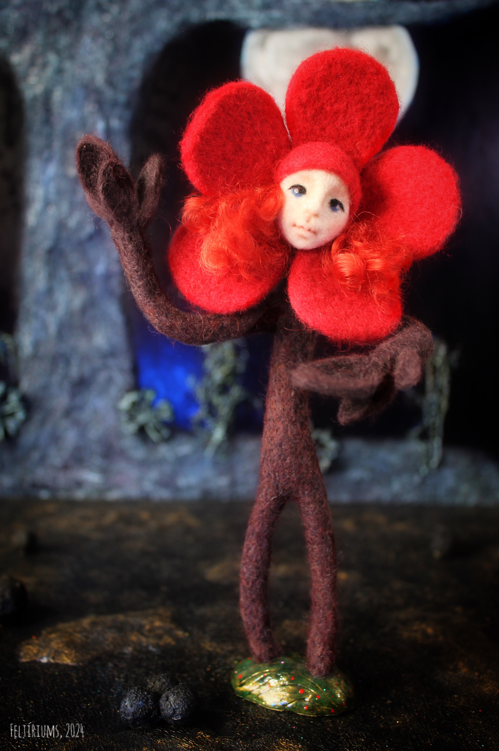 Conejo Misterioso, needle felted figure